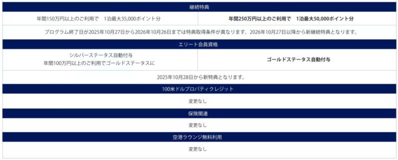ということで本来なら解約一択だけど、会員ステータスのゴールドは維持したい。そこでマリオットボンヴォイカード普通カードにダウングレードすることにした。普通カードは年会費34,100円、ゴールドステータス自動付与、無料宿泊特典は250万円利用で50,000P。この無料宿泊特典は諦めるっていうことにした。今はプラチナなんだけど、プラチナなら朝食無料、ラウンジ利用可と特典が多いけど、これを維持するにはプレミアムカードを持ち毎年500万円以上カードを使わなくちゃならない・・・無理でしょ。だから大人しくゴールドステータスでちょっとお部屋をUGしてもらい、2時間くらいのアーリーチェックインやレイトチェックインを利用する。34,100円だもの十分だと思うよ。