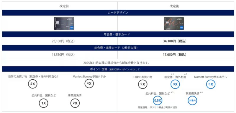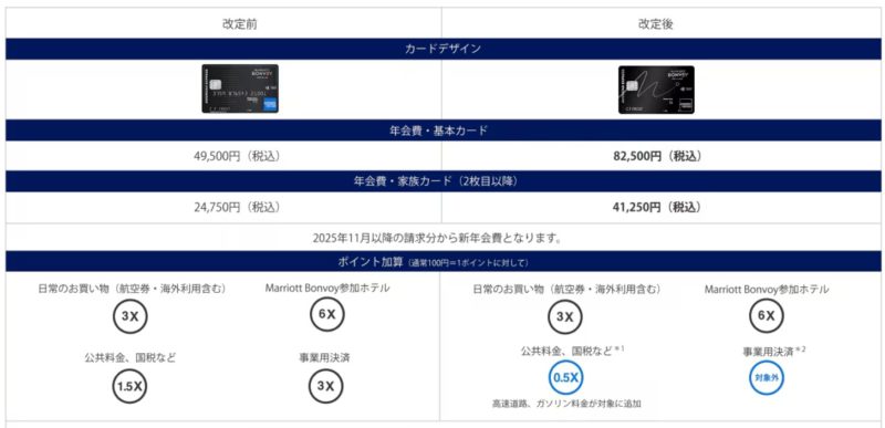 その後SPGカードはマリオットボンヴォイカードになって、プレミアムと普通カードに分かれたんだけど、カードの特典を考えプレミアムを選択。年会費49,500円。事実上の値上げ。でもカードを年間150万円利用すると無料宿泊ポイントが50,000ポイント貰えるので、これもまあまあ元が取れる計算。ところが今回は年会費が82,500円になって、無料宿泊が貰えるのはカード利用250万円。100万円も今までよりカード使わなきゃならない。さらにかあちゃんにとって打撃なのは、固定資産税の支払いで100円につき1.5Pだったのが0.5Pと貰えるポイントが1/3になること。税金以外の通常の買い物は変更なしだけど・・・